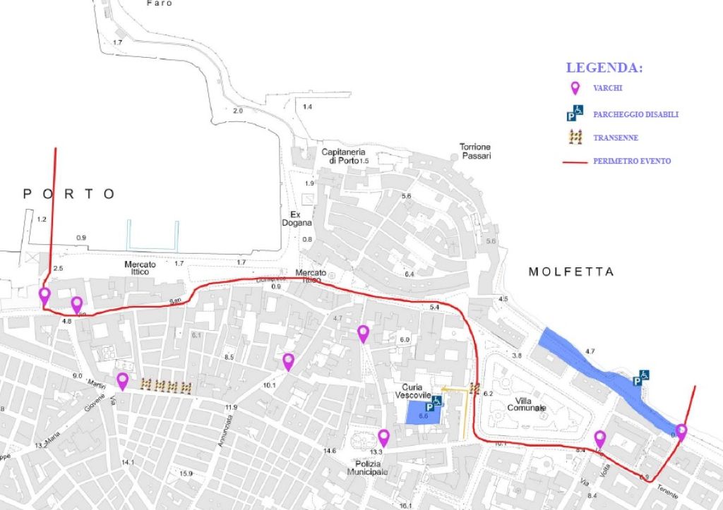 Nei giorni 29 e 30 giugno, dalle 16 alle 24 saranno chiuse al traffico, Corso Dante, Banchina Seminario, Banchina San Domenico, Via San Domenico,Via Vittorio Emanuele, Piazza Garibaldi, nel tratto compreso tra Via Vittorio Emanuele, Via Tenente Fiorino, nel tratto compreso fino a Via Alessandro Volta, Via Orsini, Via Pallavicini, Via Mazzini, Via Sant’Angelo, nel tratto compreso tra Largo Sant’Angelo e Corso Dante, e Via Cifariello nel tratto compreso tra Via Domenico Picca e Via San Domenico.