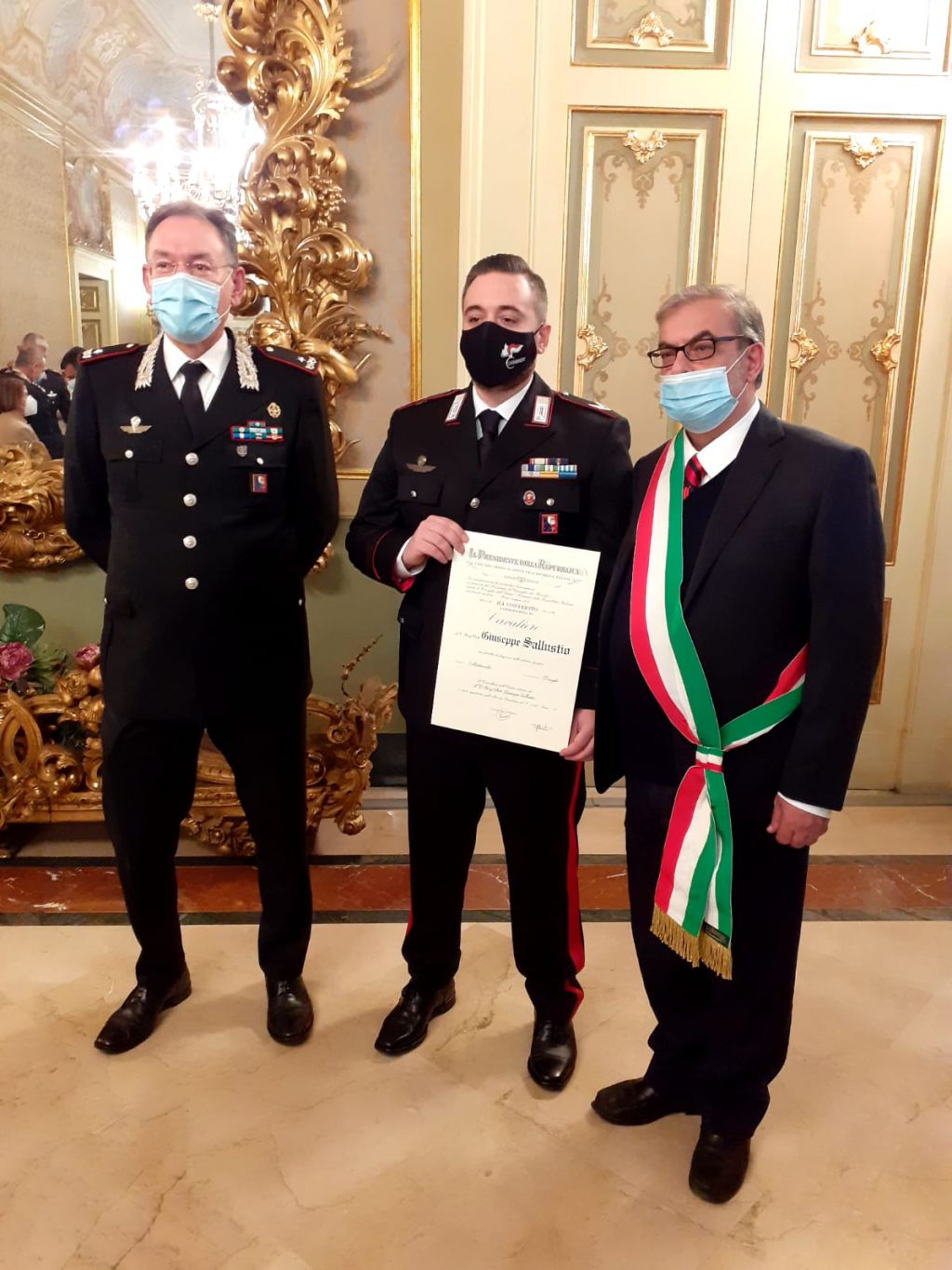 «E’ questa la Molfetta che ci piace raccontare. Sono questi i figli di Molfetta che ci rendono orgogliosi – il commento del Sindaco Tommaso Minervini, presente alla cerimonia di consegna del diploma di merito – Il vice brigadiere Sallustio, che ha solo 38 anni, è il più giovane tra gli insigniti e con il suo coraggio si è conquistato un posto tra gli eroi del nostro tempo».