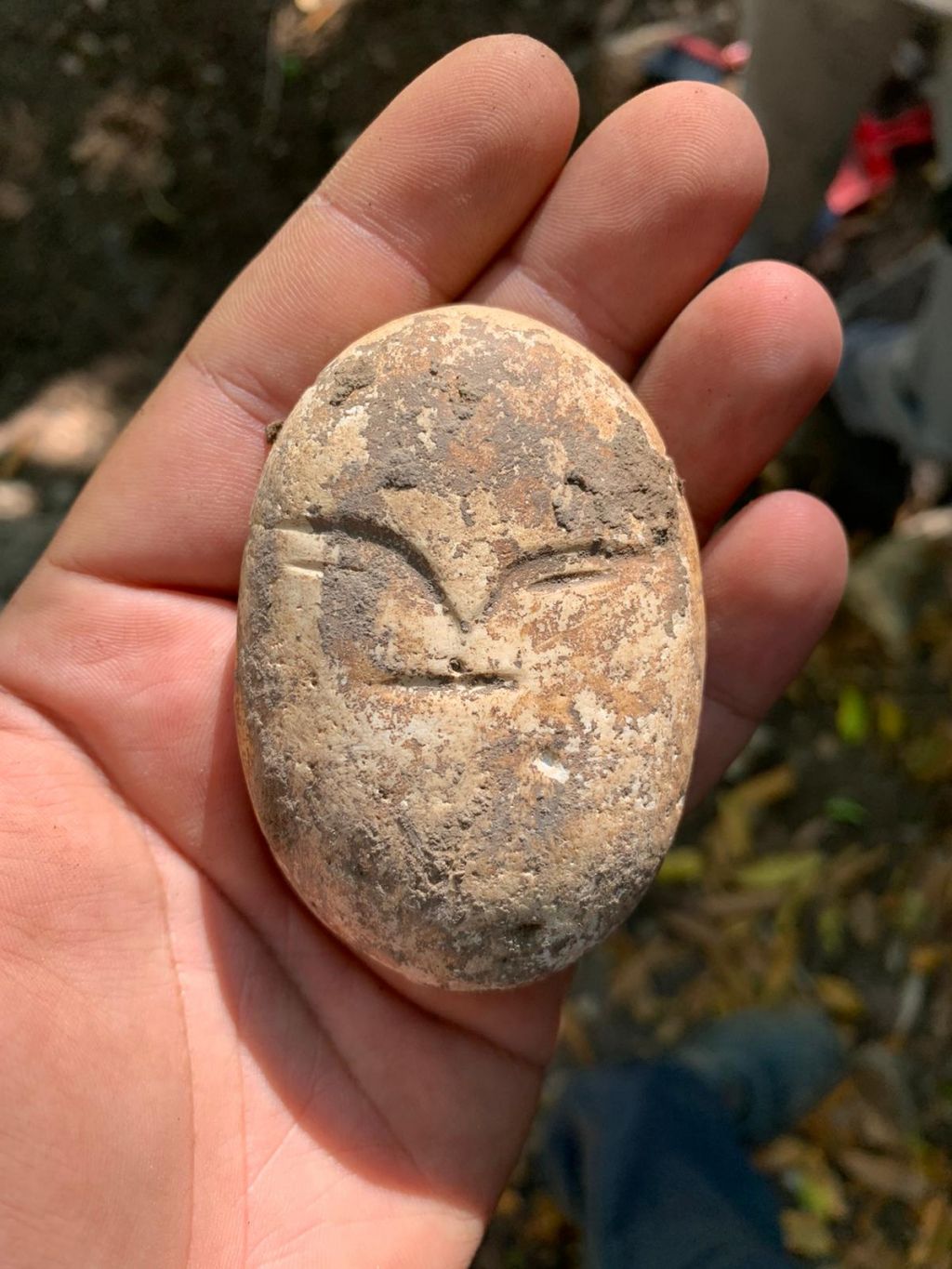 Il reperto votivo, proveniente, forse, da ambito funerario, ed attualmente in corso di studio presso la Soprintendenza, è attribuibile alla fase neolitica di occupazione del sito. Nello specifico la presenza sul retro di una incisione con un motivo a zig-zag permetterebbe di collocare l’oggetto tra la fase media e finale del neolitico (VI - V millennio a.C.).