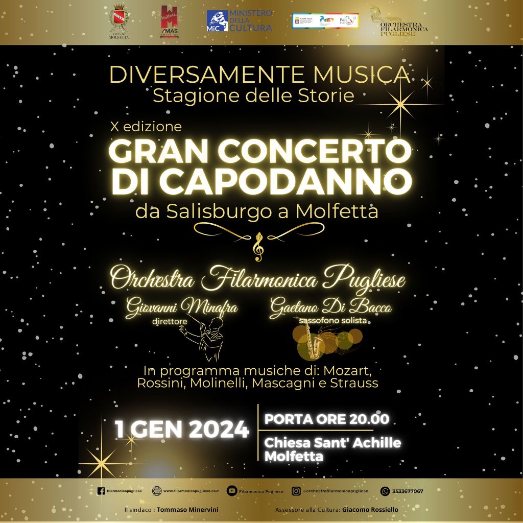 «Quello del Primo dell’anno è un concerto di altissimo livello, un appuntamento da non perdere per salutare il nuovo anno. Siamo onorati di ospitare una orchestra così importante apprezzata anche all’estero», aggiunge l’assessore alla cultura, Giacomo Rossiello.