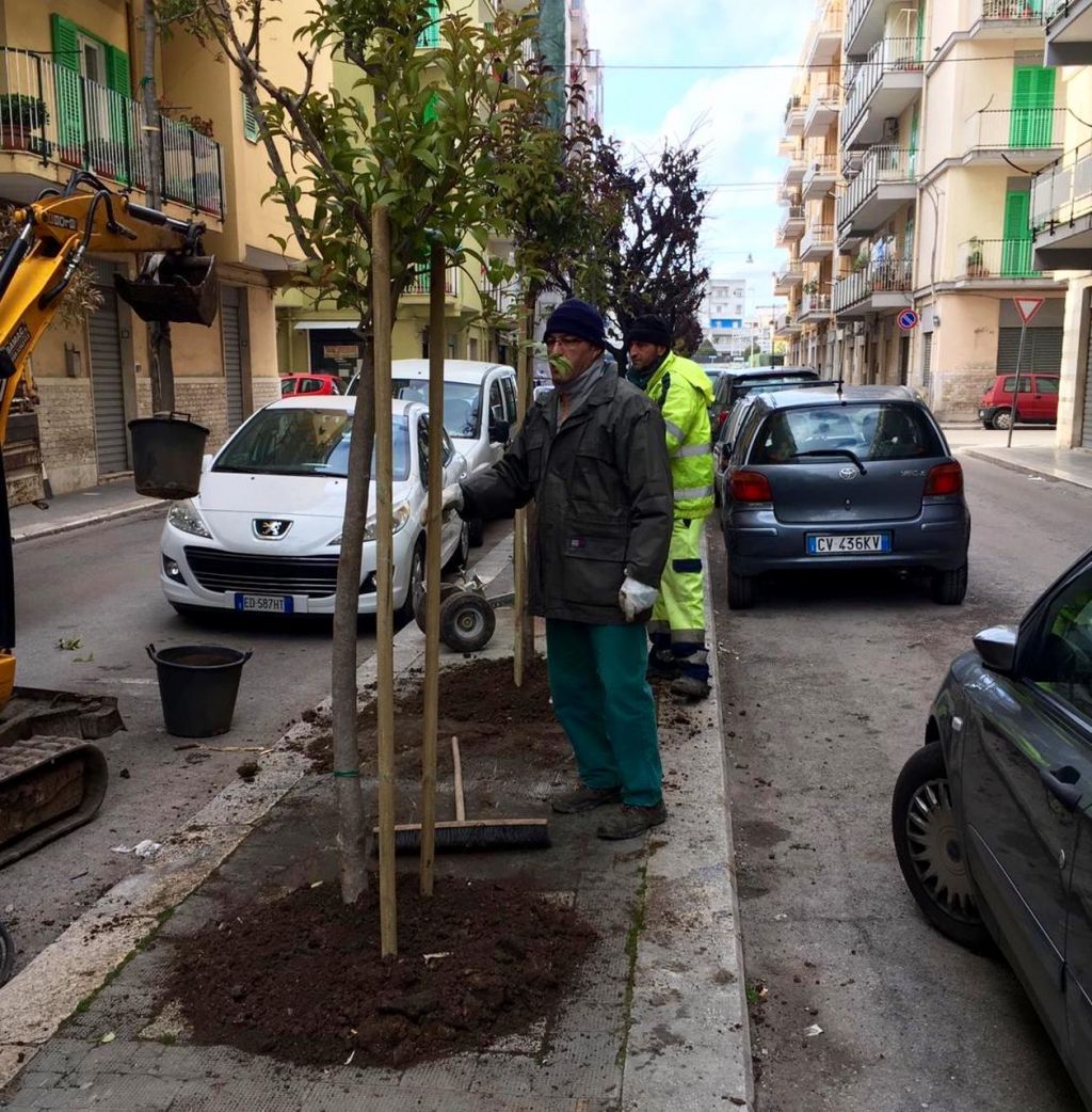 Dalle prime ore della mattinata di oggi gli operai della Multiservizi sono all'opera per piantumare nuove alberature lungo Via Capitano De Candia, Via Capitano Azzarita e Via Gaetano Salvemini.