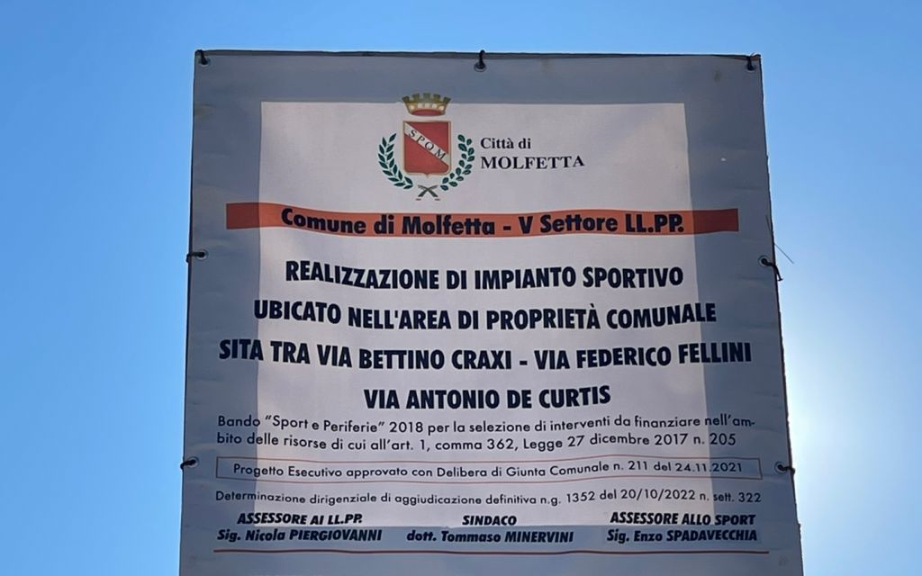 «Con la realizzazione di questo ulteriore impianto sportivo, oltre ad arricchire il numnero delle strutture comunali a servizio dello sport e della socializzazione – il commento del Sindaco, Tommaso Minervini, e dell’assessore allo sport, Enzo Spadavecchia - andiamo a qualificare ancor più un’area di grande urbanizzazione della nostra città».