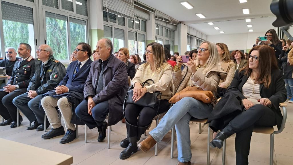 Di fronte a lui rappresentanti delle Forze dell’Ordine, dei comuni di Terlizzi, Bitonto, Giovinazzo, docenti, rappresentanti del Terzo Settore e studenti. Molti studenti.