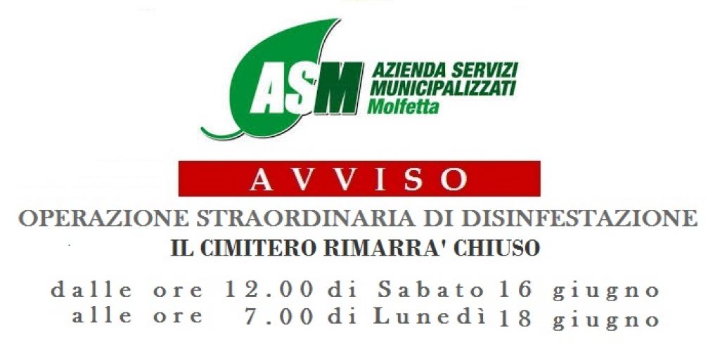 Avviso Asm Cimitero operazione straordinaria di disinfestazione estate 2018 1