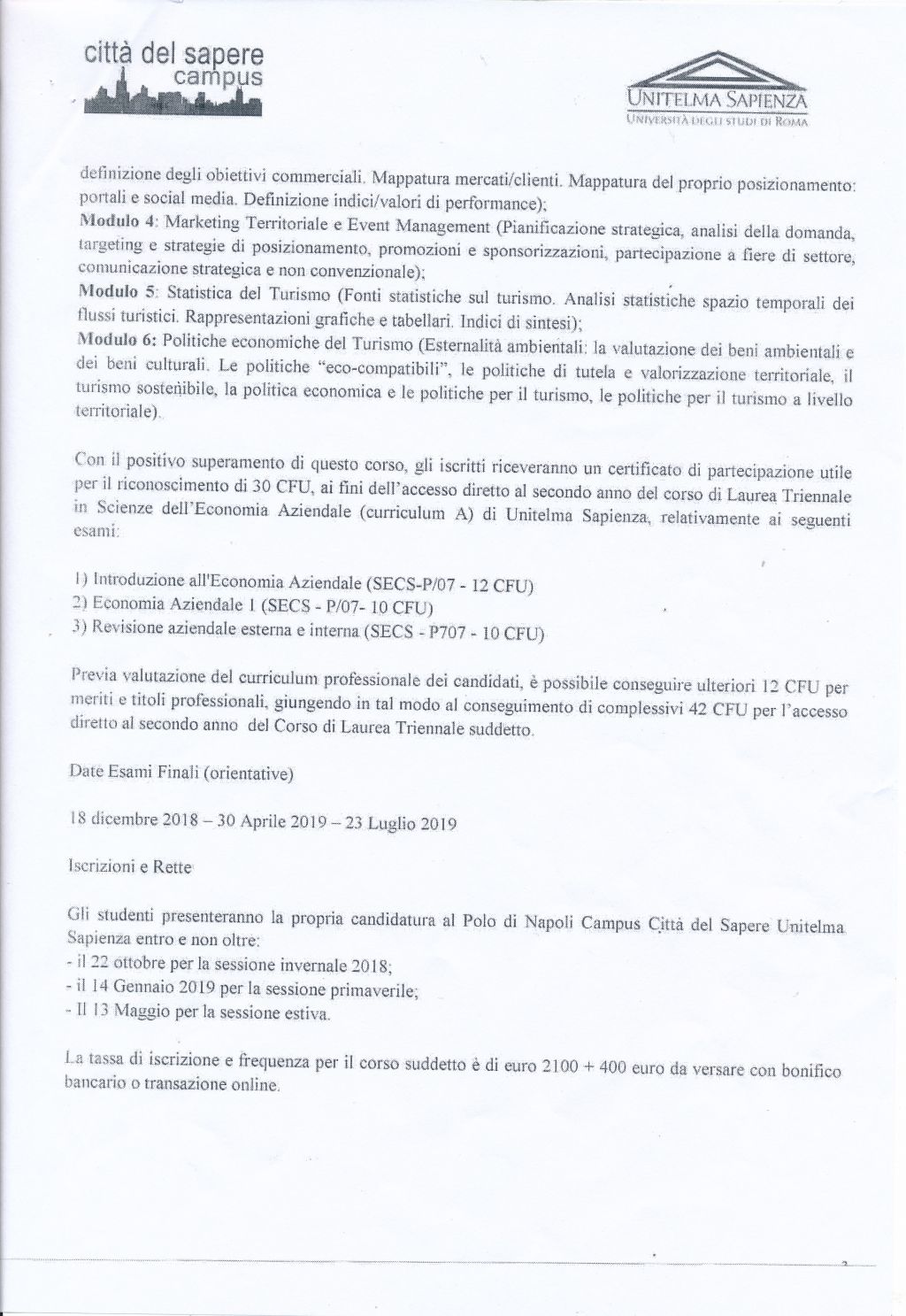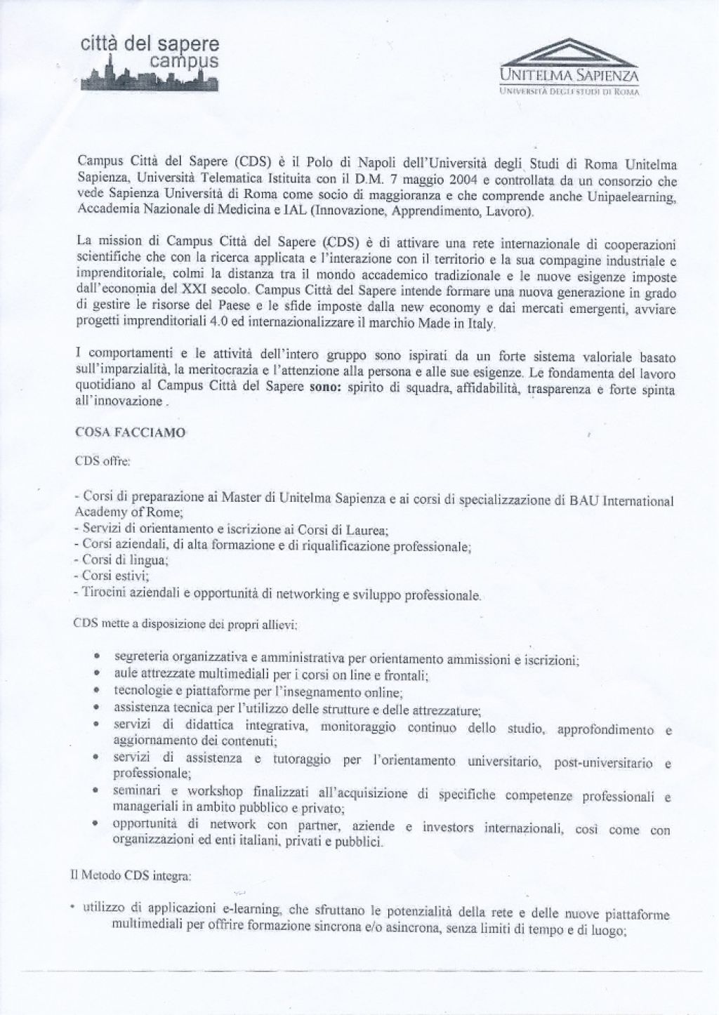 Opportunita di studio e lavoro Unitelma novembre 2018 1