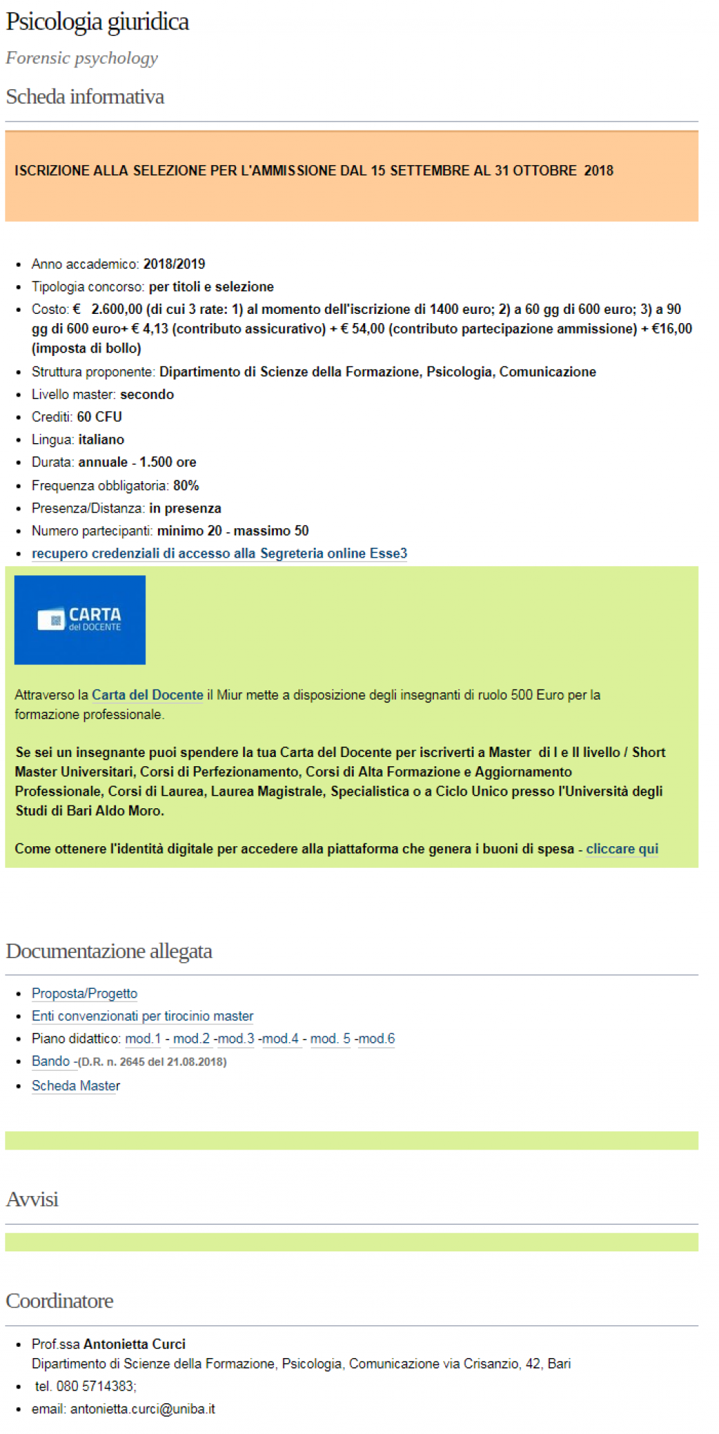 Locandina web Master II Livello in Psicologia Giuridica 2018 2019