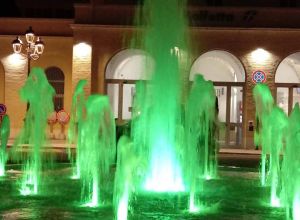 Palazzo Giovene e la fontana di piazza Aldo Moro si illuminano di verde