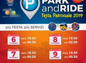 Tre aree parcheggio per evitare l’utilizzo dell’auto e raggiungere i luoghi della festa. Corse ogni venti minuti. Torna il Park&ride gratuito in occasione della festa patronale. Il servizio, che larghi consensi ha fatto registrare lo scorso anno, sarà attivo da venerdì 6 settembre a lunedì 9 settembre incluso.