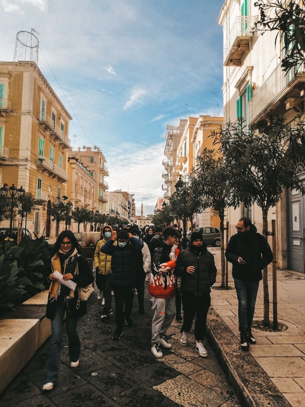 Il tour è iniziato nella Piazza Aldo Moro a Molfetta. I partecipanti hanno ascoltato la vita del 5 volte presidente del Consiglio tramite la voce di Gloria Illana, volontaria spagnola del progetto “Take me in Europe vol.3, e hanno scoperto che è stato assassinato dalle Brigate Rosse, un temuto gruppo terroristico italiano negli anni ’70. Dopo la spiegazione, gli studenti del Gaetano Salvemini hanno fatto un breve quiz per testare le loro conoscenze.