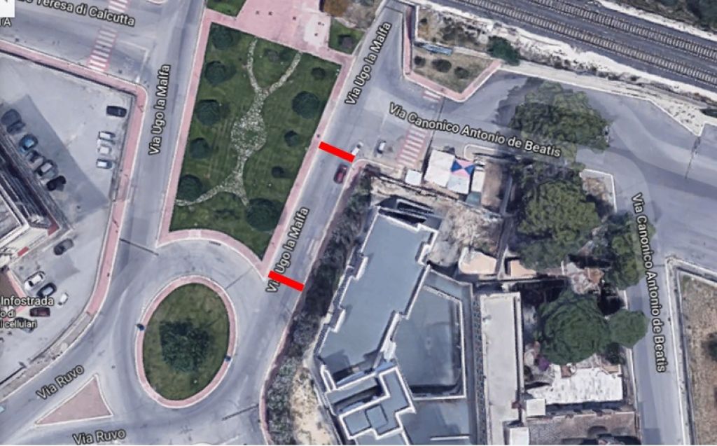Proseguono i lavori per la realizzazione della pista ciclabile. A partire da oggi, e fino a conclusione dei lavori, restano chiuse al traffico Via La Malfa, Via Cardinale Caglieri, Via Mazzarella. Di conseguenza la circolazione stradale subirà variazioni per la realizzazione del primo di tre nuovi attraversamenti stradali.