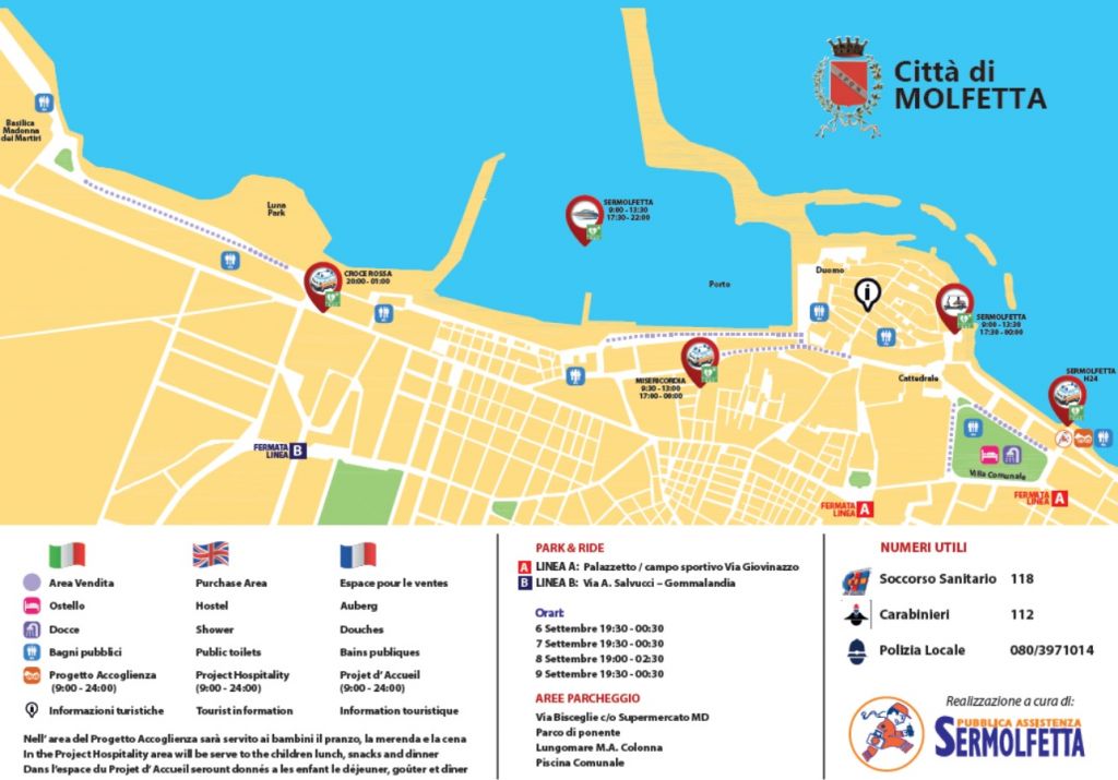 Nei giorni di festa, alla secca dei pali, saranno presenti più unità dei Carabinieri e della Guardia di finanza, in arrivo da Bari. Nella centrale operativa del comando della Polizia locale saranno monitorate costantemente le immagini riprese dalle oltre 20 telecamere presenti dalla villa comunale a Viale dei Crociati. Si invita la cittadinanza, in caso di necessità, a usare i numeri istituzionali di soccorso: 118 per il soccorso sanitario e 112 per i carabinieri.