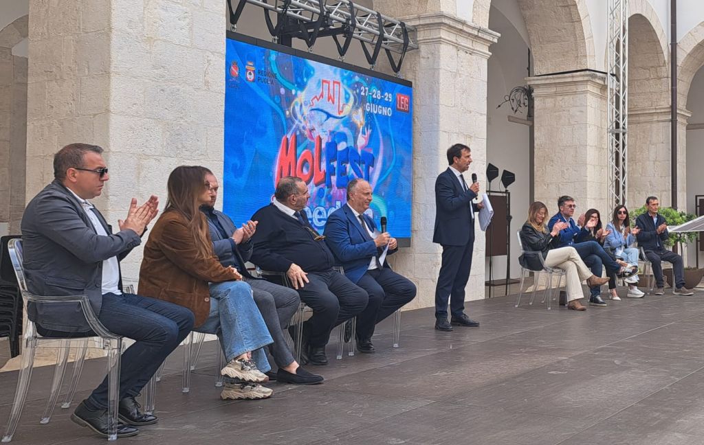L’edizione 2025 del MolFest è stato presentato nel chiostro della Fabbrica di San Domenico, presenti, tra gli altri, Saverio Tammacco, presidente della Commissione bilancio della Regione, che ha ricordato il decisivo contributo inserito nella legge regionale 42 del 2004, per la realizzazione del festival, il vice sindaco, Nicola Piergiovanni, il Presidente del Consiglio comunale, Robert Amato, gli assessori Anna Capurso, alla socialità, Giacomo Rossiello, al marketing territoriale, Caterina Roselli, alla Polizia locale e alle politiche giovanili, Carmela Minuto, al commercio, Sergio de Candia, all’urbanistica, i consiglieri comunali Giacomo Salvemini, presidente della Commissione cultura, turismo e sport, ed Elena Ginosa, presidente della commissione socialità.