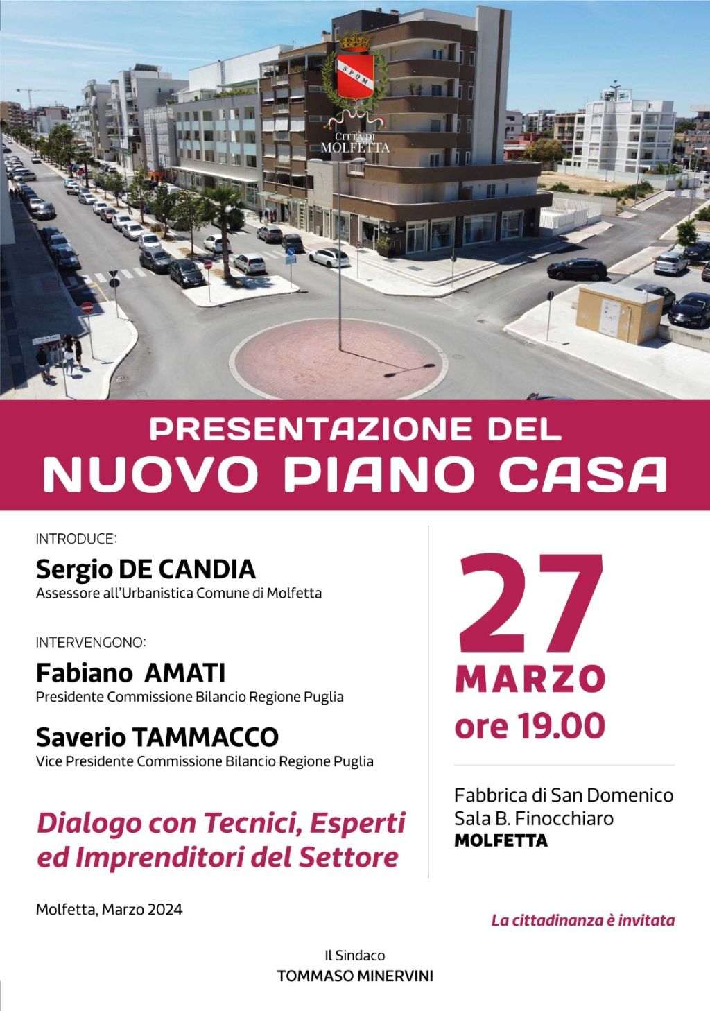 Introduce Sergio De Candia, assessore all’Urbanistica del Comune di Molfetta. L’incontro è aperto al pubblico.