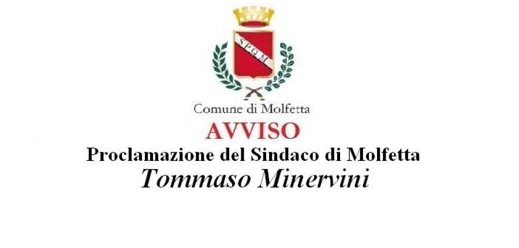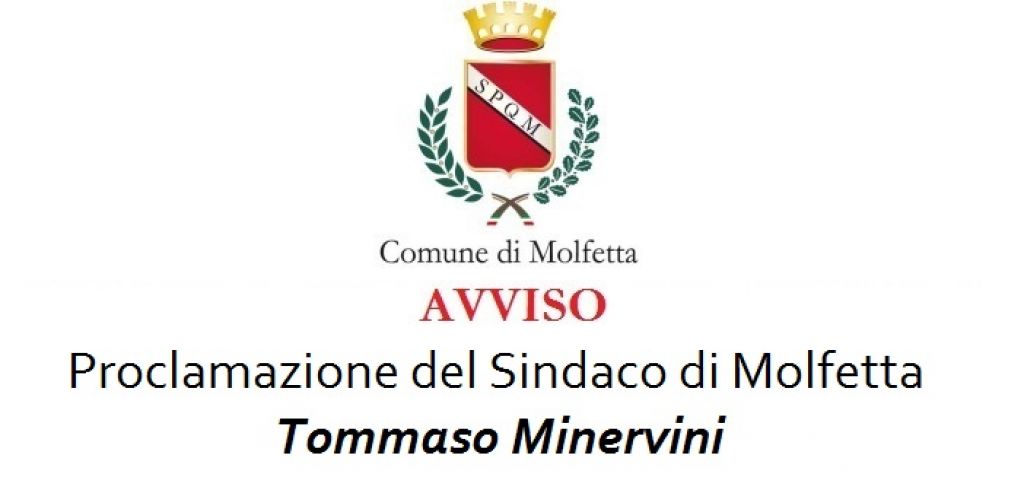 Il Presidente dell'Ufficio Centrale Elettorale comunica che procederà alla  proclamazione del Sindaco di Molfetta, Tommaso  MINERVINI,  presso il Comune in Piazza Municipio, venerdì 30 giugno 2017 alle ore 18,40.