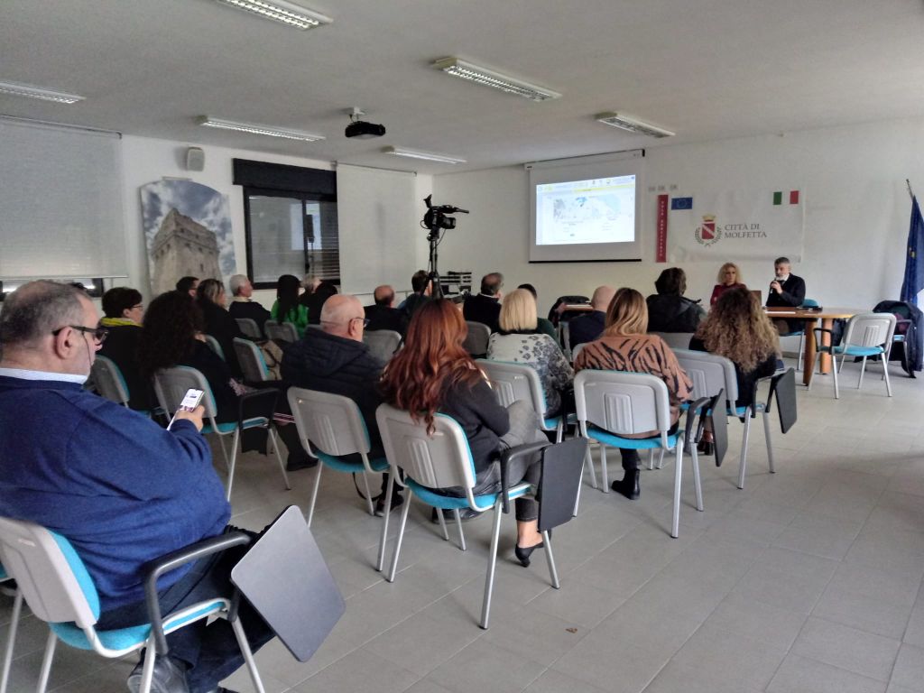 Nella sala conferenze della sede comunale di Via Martiri di Via Fani, a Molfetta, l’ingegner Danilo Martino e l’architetto Antonella Fatone, Responsabile unico del procedimento, alla presenza del Sindaco, Tommaso Minervini, e di un numeroso uditorio, hanno illustrato i dati raccolti e analizzati relativi al trasporto di materiali infiammabili nell’area del programmaed ha descritto l’obiettivo principale del progetto: l’implementazione di una piattaforma per la gestione del trasporto marittimo con software dedicato. Presenti anche il Presidente del Consiglio comunale, Robert Amato, e il vice sindaco, Nicola Piergiovanni.