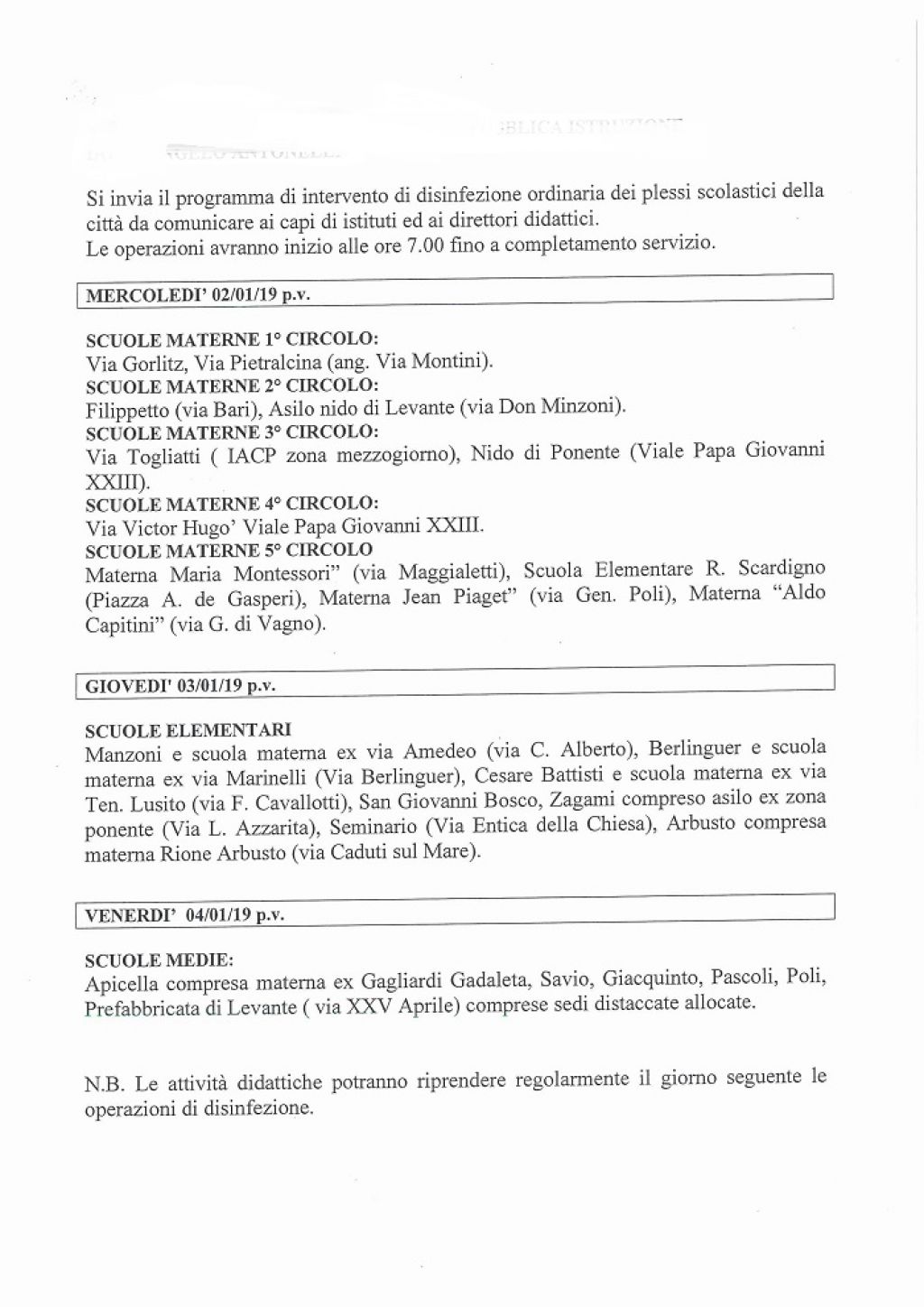 Avviso Asm avviso di disinfezione istituti scolastici