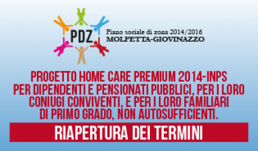 Riapertura dei termini Progetto "Home Care Premium 2014 INPS" per i dipendenti e pensionati pubblici, per i loro coniugi conviventi e per i loro familiari di primo grado non autosufficienti.