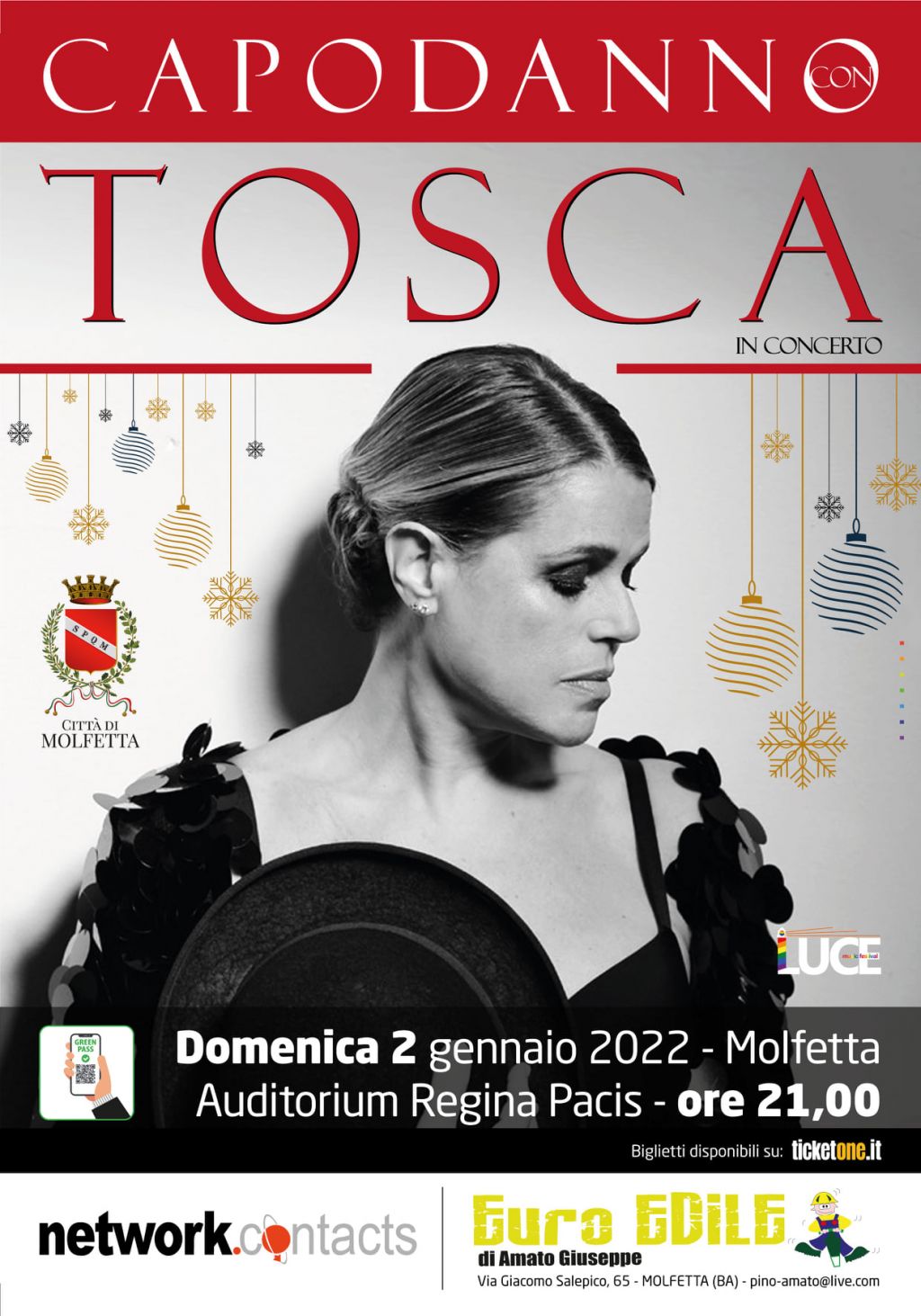 L’organizzazione ha comunicato che, è stato rinviato al 3 aprile 2022, il concerto di Tosca, in programma, il 2 gennaio nell’auditorium Regina Pacis di Molfetta, nell’ambito della Rassegna Molfetta in luce predisposta in occasione delle festività di fine anno dal Comune di Molfetta (assessorati al Marketing territoriale e Cultura) e dal Distretto urbano del commercio.