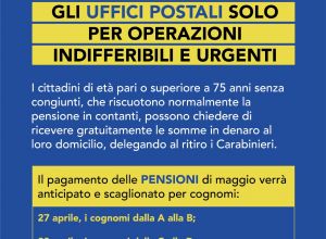 Si ricorda alla cittadinanza che, in Posta, ci si può recare solo per operazioni indifferibili ed urgenti.