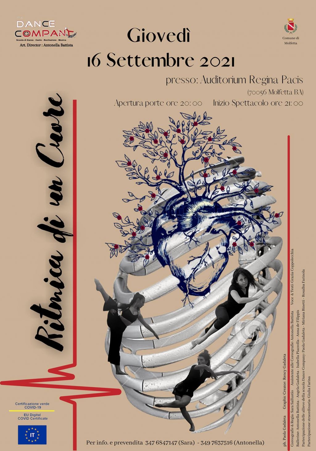 L’evento, a cura della “Dance Company” di Molfetta, vede Sara Sallustio come coreografa e regista, Antonella Battista come assistente alle coreografie, Grazia Coppolecchia per la voce e i testi, Antonella Battista, Angela Gadaleta, Isabella Piazzolla e Anna de Filippis in qualità di ballerine. Alla partecipazione delle allieve della scuola di danza Paola Gadaleta, Miriana Binetti e Rosalba Farinola, si aggiunge la partecipazione straordinaria di Giulia Farina.