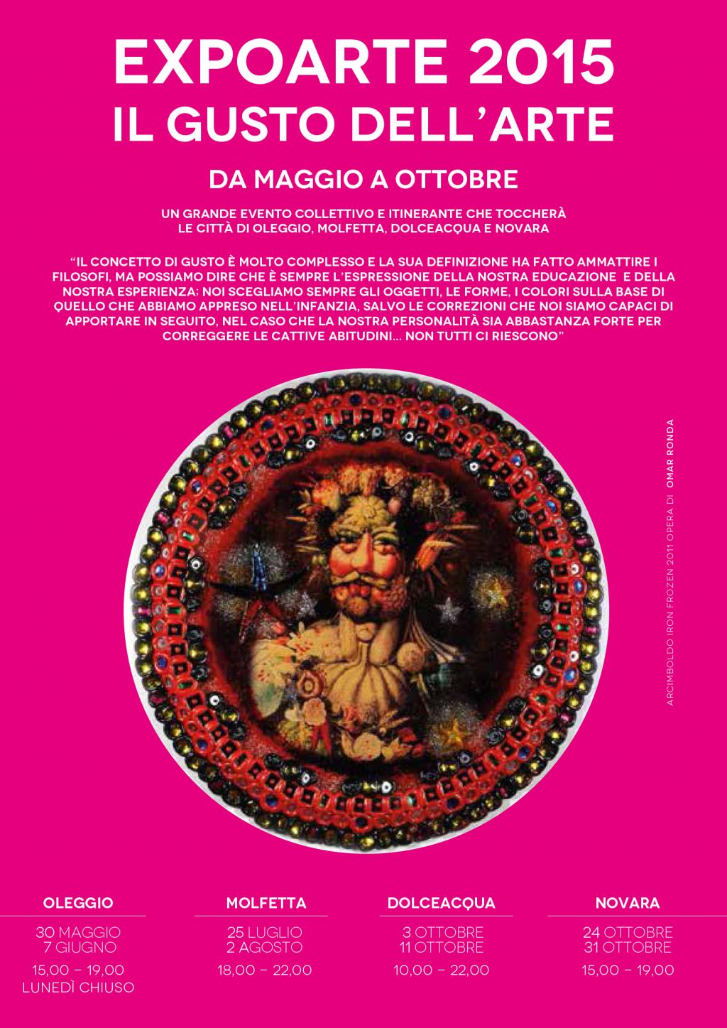 Per l'occasione sarà esposta la famosa opera Arcimboldo - Iron Frozen 2011 del Maestro Omar Ronda che segue tutto il percorso espositivo del progetto.