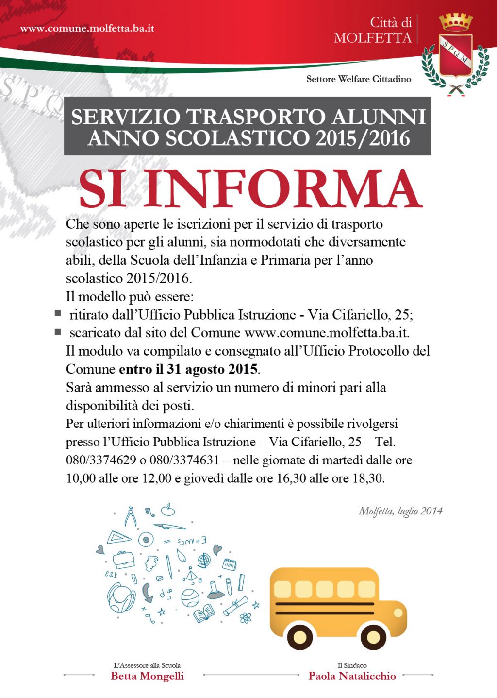 SERVIZIO TRASPORTO ALUNNI ANNO SCOLASTICO 2015/2016