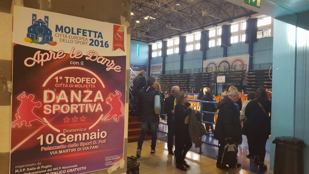 Si sono "aperte le danze" per Molfetta città europea dello sport 2016. Molfetta ha ospitato il 10 gennaio il 1° Trofeo Città di Molfetta di danza sportiva.