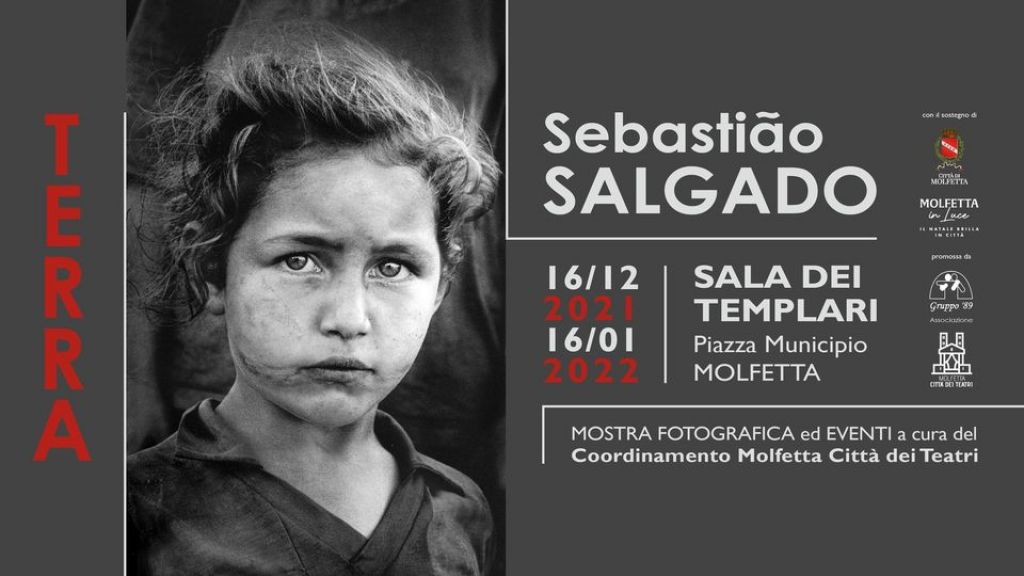 Il Coordinamento Molfetta Città dei Teatri, con il sostegno del Comune di Molfetta, nell'ambito della programmazione Natale in luce, presenta “Terra” di Sebastião Salgado, mostra fotografica ed eventi, ospitata dalla Sala dei Templari dal 16 dicembre 2021, giorno della inaugurazione, al 16 gennaio 2022