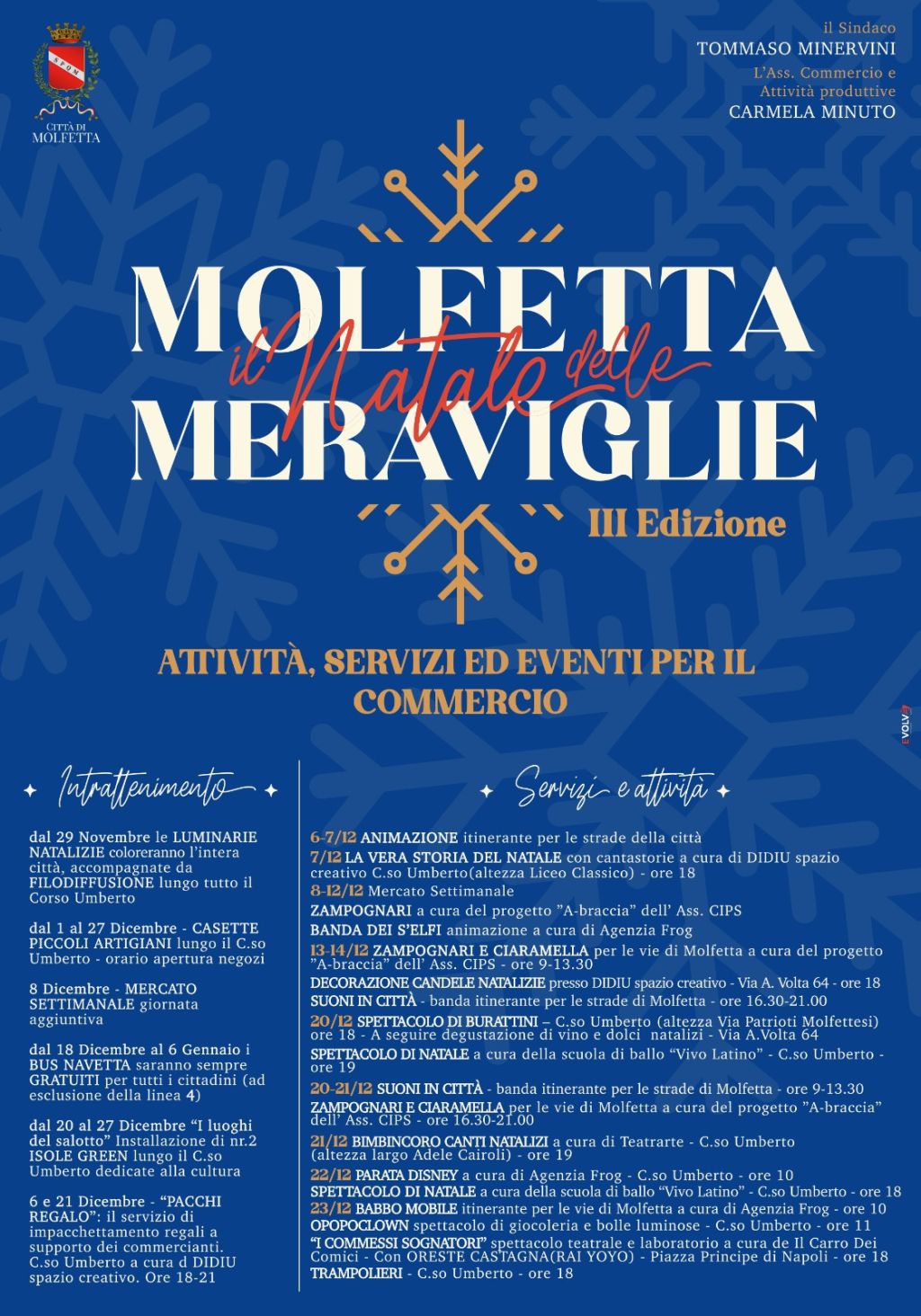 Torna il Natale delle Meraviglie. L’assessore Minuto: sosteniamo il commercio locale. Presto il cartellone Molfetta Xmas emotions 2024