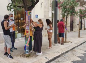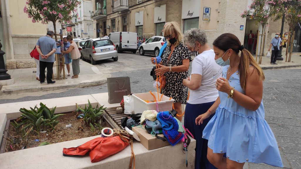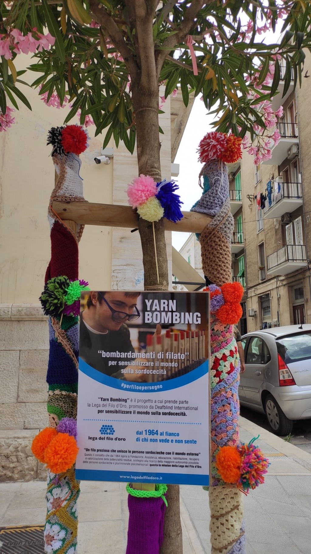 Lo Yarn bombing – una forma di arte di strada in cui il filo lavorato a maglia decora uno spazio pubblico – per sensibilizzare sul tema della sordocecità. L’iniziativa, che si è tenuta a livello nazionale, è della Lega del filo d’oro e vede il patrocinio morale del Comune di Molfetta, in occasione della Giornata della sordocecità del 27 giugno.