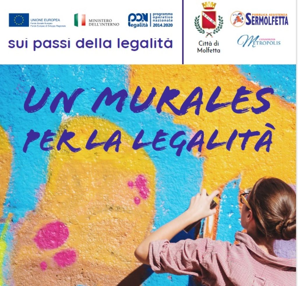 Un murales sulle pareti dell’Istituto Alberghiero di Molfetta, sede succursale Prima Cala, Via Giovinazzo, per veicolare la cultura della legalità ed educare i più giovani alla coscienza civica.