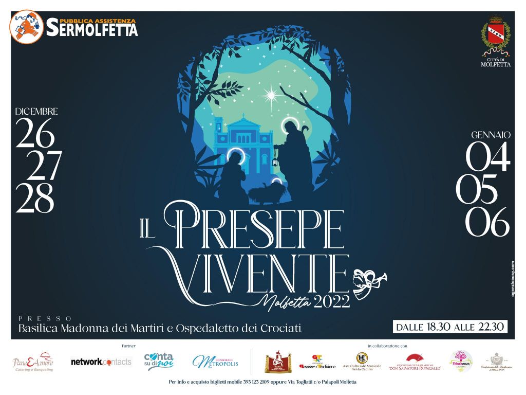 Più che un presepe vivente, una vera e propria produzione artistica. Quattro ambientazioni differenti. Circa cento figuranti e attori professionisti. Animali da cortile e situazioni assolutamente realistiche. Molfetta, a partire dal 26 dicembre prossimo, con il Sermolfetta, nell’ambito del cartellone X-Mas edition, promosso dall’Assessorato alla Cultura del Comune di Molfetta, ospita Theorema Betlemme, un presepe tutto da vedere e vivere nell’Ospedaletto dei Crociati, nell’area esterna e nel chiostro della Basilica della Madonna dei Martiri.