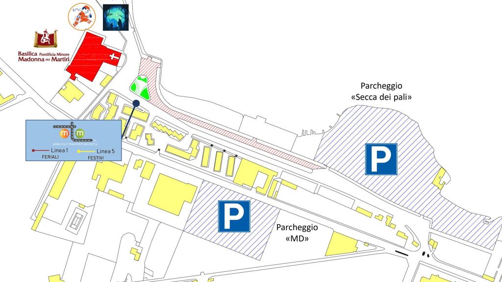 Per consentire una più agevole fruizione del presepe l’Organizzazione ha individuato aree parcheggio dedicate in località Secca dei Pali, ex Mattatoio e MD.