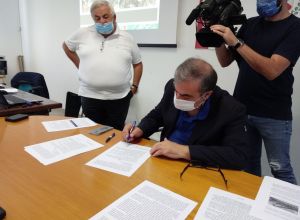 Molfetta entra nel futuro della logistica e dello sviluppo. Il sindaco Tommaso Minervini ha firmato l’atto d’indirizzo che dà impulso alla realizzazione di un terminal ferroviario collegato al nuovo porto commerciale «ritenendola meritevole d’interesse pubblico e di alto valore strategico per lo sviluppo socioeconomico e ambientale della Città». La proposta, presenti il Sindaco, Tommaso Minervini, e Vito Totorizzo, General Manager Gruppo Spamat, è stata illustrata, nel corso di un incontro nella sala conferenze di Lama Scotella, dal Consulente scientifico della Istop Spamat ingegnere Antonio Basili.