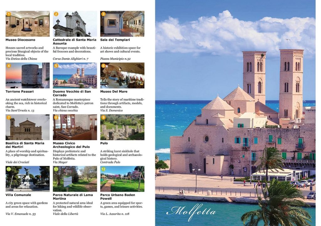 Una mappa che racconta i luoghi più belli della città, disponibile gratuitamente in formato PDF e in versione stampata. È stata realizzata da Roberto Ayroldi e Monica Azzollini, due talentuosi e generosi giovani molfettesi, che hanno messo a disposizione della collettività le loro competenze con l’obiettivo di valorizzare il patrimonio storico e culturale della città.