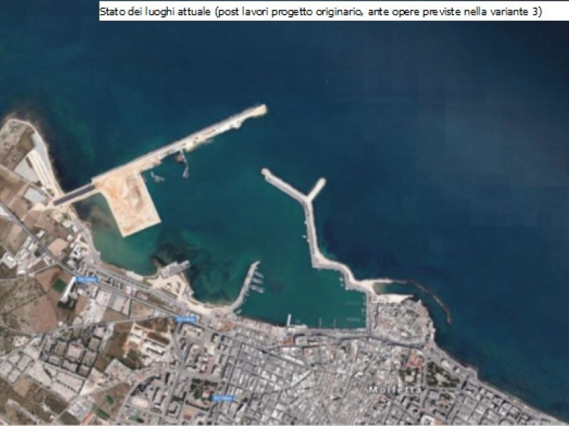 L’intervento consiste nella realizzazione delle opere previste come primo stralcio del progetto generale di completamento del Nuovo Porto Commerciale di Molfetta e volte ad assicurare la salvaguardia, la sicurezza alla navigazione ed all’ormeggio del bacino portuale di Molfetta.