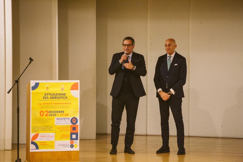 A Molfetta, nell’Auditorium Regina pacis, il 2 dicembre, in concreto, si è parlato di Zes Adriatica Puglia Molise e di modalità di attuazione. L’Ing. Manlio Guadagnuolo, commissario straordinario del Governo, Saverio Tammacco, vice presidente regionale della commissione bilancio della Regione Puglia, i sindaci di Molfetta, Tommaso Minervini, e Bisceglie, Angelantonio Angarano, l’assessore alla attività produttive, Carmela Minuto, hanno fotografato la situazione attuale, avanzato proposte e richieste, illustrato il futuro prossimo, fornito informazioni utili agli imprenditori e ai professionisti, numerosissimi in sala, ed ai rappresentanti delle maggiori categorie professionali, giunti anche dalle città del circondario.